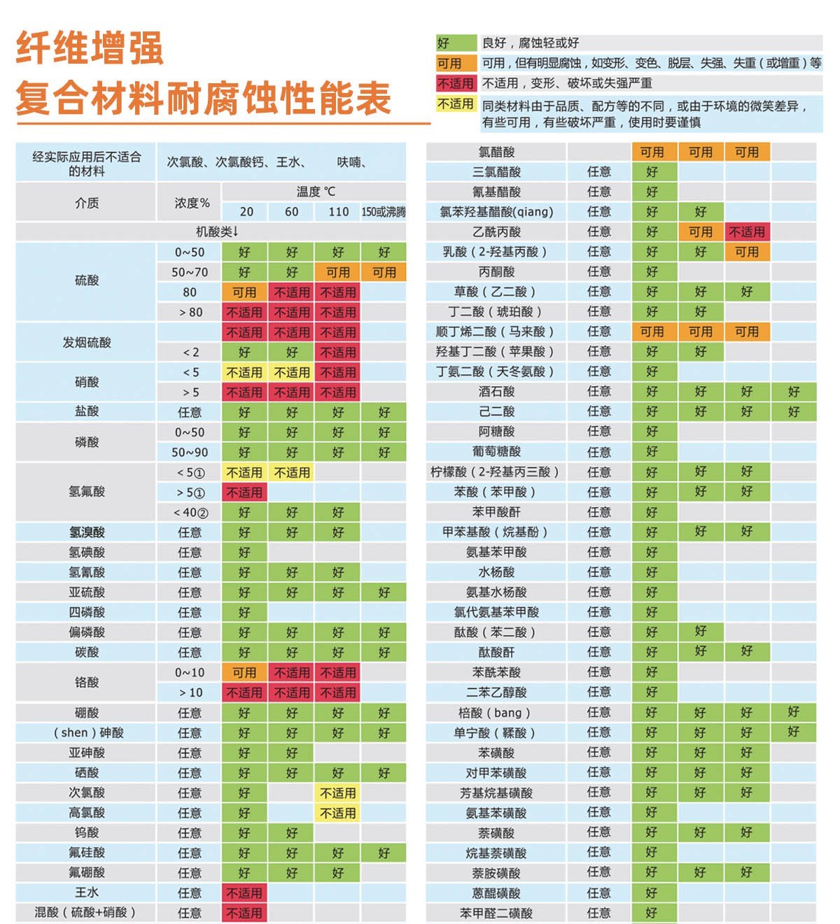 經(jīng)過實驗和生產(chǎn)中的實際應(yīng)用,高性能復(fù)合材料真空泵可以很好的適用于抽吸氯化氫、磷酸、鹽酸、甲苯、乙醇、二氧化硫、二氯甲烷、二氯乙烷、溴化氫等多種酸性腐蝕氣體和有機(jī)溶劑(詳見纖維復(fù)合材料耐腐蝕性能表)。